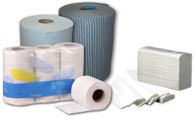 Amplia fama de consumibles de celulosa para el secado, limpieza e higiene, disponibles en diferentes formatos. Higiénicos, secamanos, toallas cortadas, bobina industrial, etc...